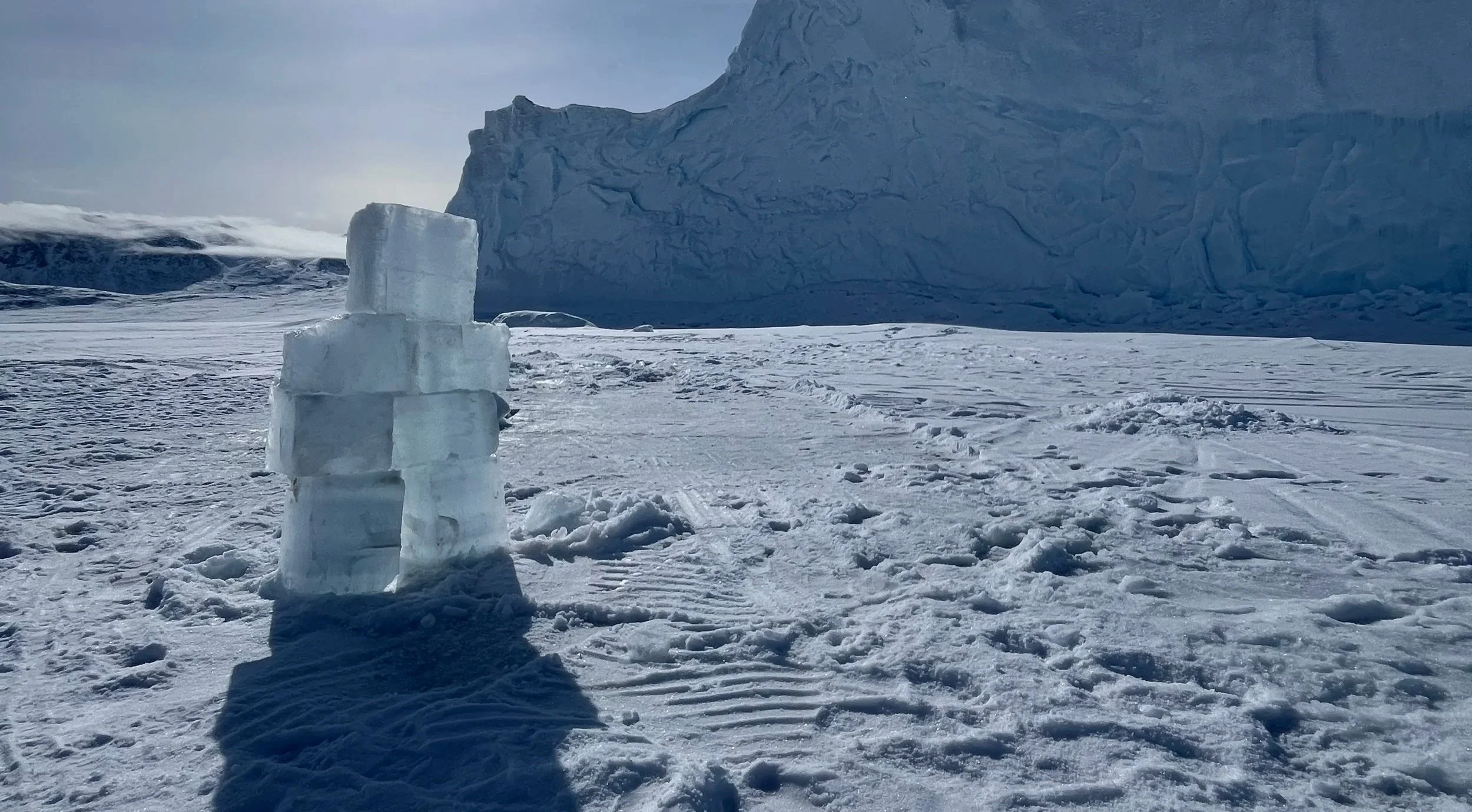 The next morning we started bright and early with an epic dive plan. After a short breakfast in the hotel and briefing we set out again as a full crew for a nearby iceberg that had run aground in about 1000 feet of water. The locals and our expedition leader determined it was our safest option for an iceberg dive in the area. The adventure began as we set out across the ice again as a full motorcade. As we spotted the iceberg from a distance it looked small and slightly underwhelming. Boy was I wrong. On arrival it left all of our crew nearly speechless. The awe of this ancient ice up close is something to behold. The tonal range of blues and even purple tones in the ice are hard to describe. The sheer size of it up close leaves you feeling humbled and cautious.